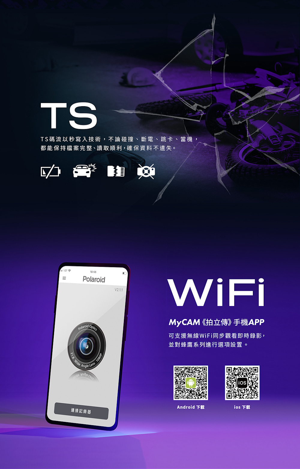 • TS碼流技術,保持讀檔完整與順利,發生碰撞與當機也不擔心