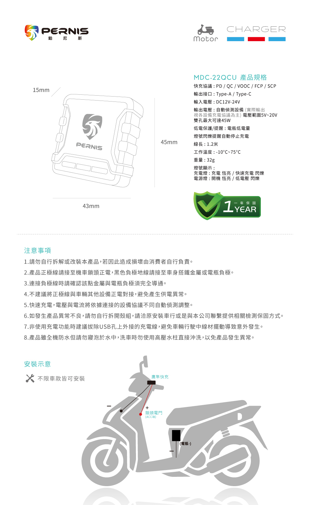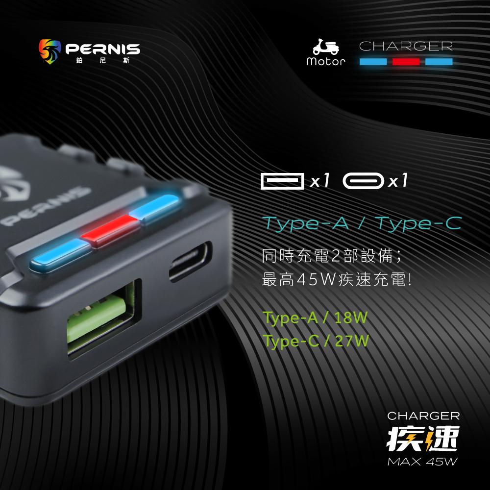 • 電壓範圍5V~20V 雙孔最大可達45W