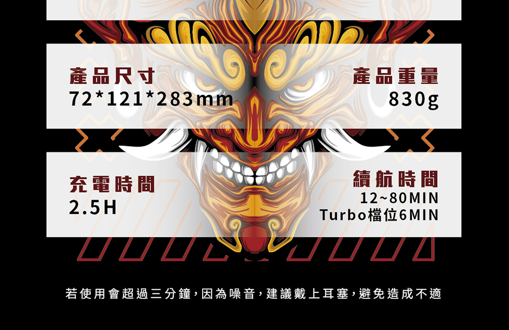 ◆ 低位檔數,續航可達80分鐘
