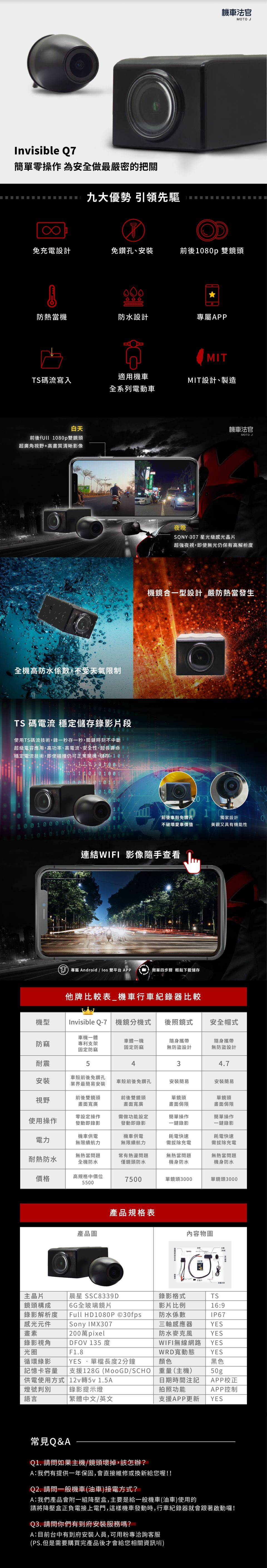 前後行車記錄器安裝費用重機約$2500、機車約$1500,充電線組安裝費用重機約$1500、機車約$1000。