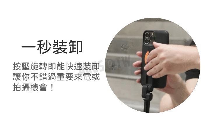 ● 四角扣片斷裂:手機安裝上支架時,手機殼背面孔位請務必對準快拆卡扣的四角扣片;如未對準就旋轉上鎖,會使四角扣片壓力不平均,長期下來易導致四角扣片斷裂,進而可能產生手機脫落的風險,此情形原廠不提供保固。如發現四角扣片有裂痕,請盡速更換快拆卡扣。