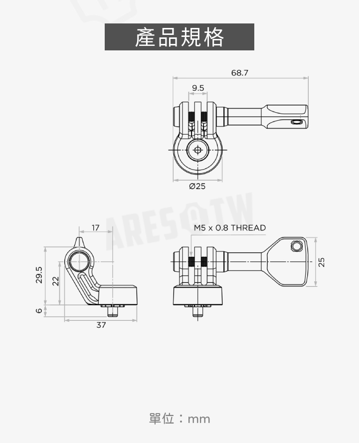 • M5 手轉螺絲 x1(安裝運動攝影機用)