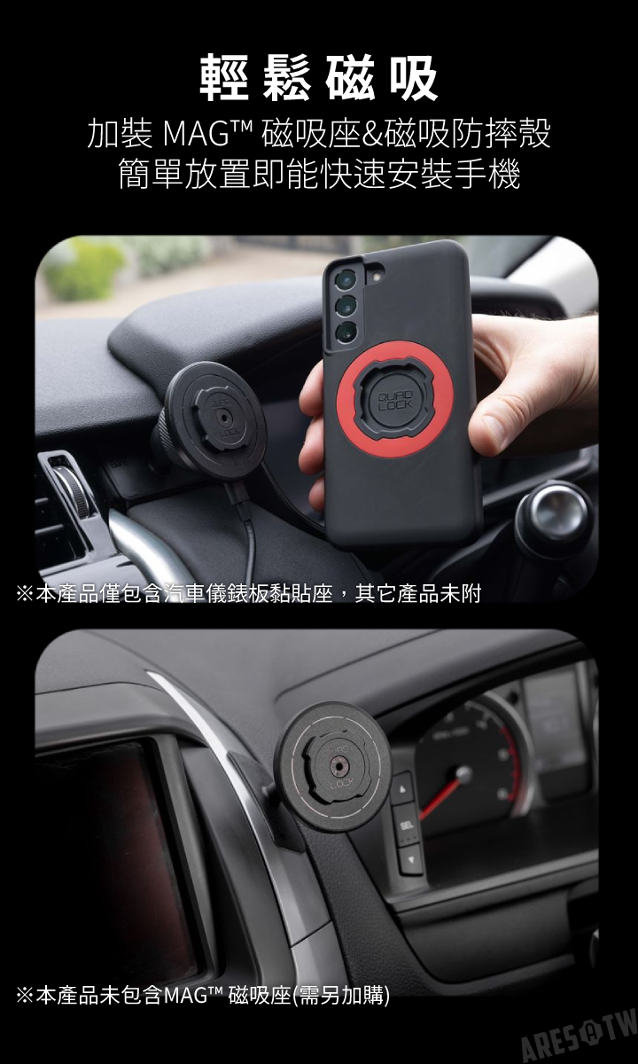 • 搭配同系列 Quad Lock MAG™ 磁吸座&磁吸防摔殼,輕鬆磁吸