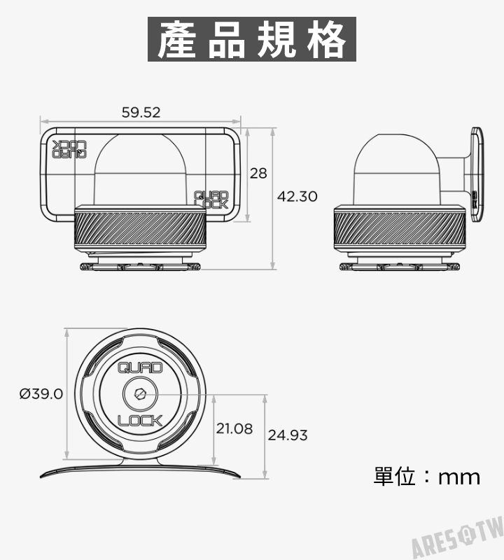 • 適用所有 Quad Lock® 手機殼和手機黏貼片