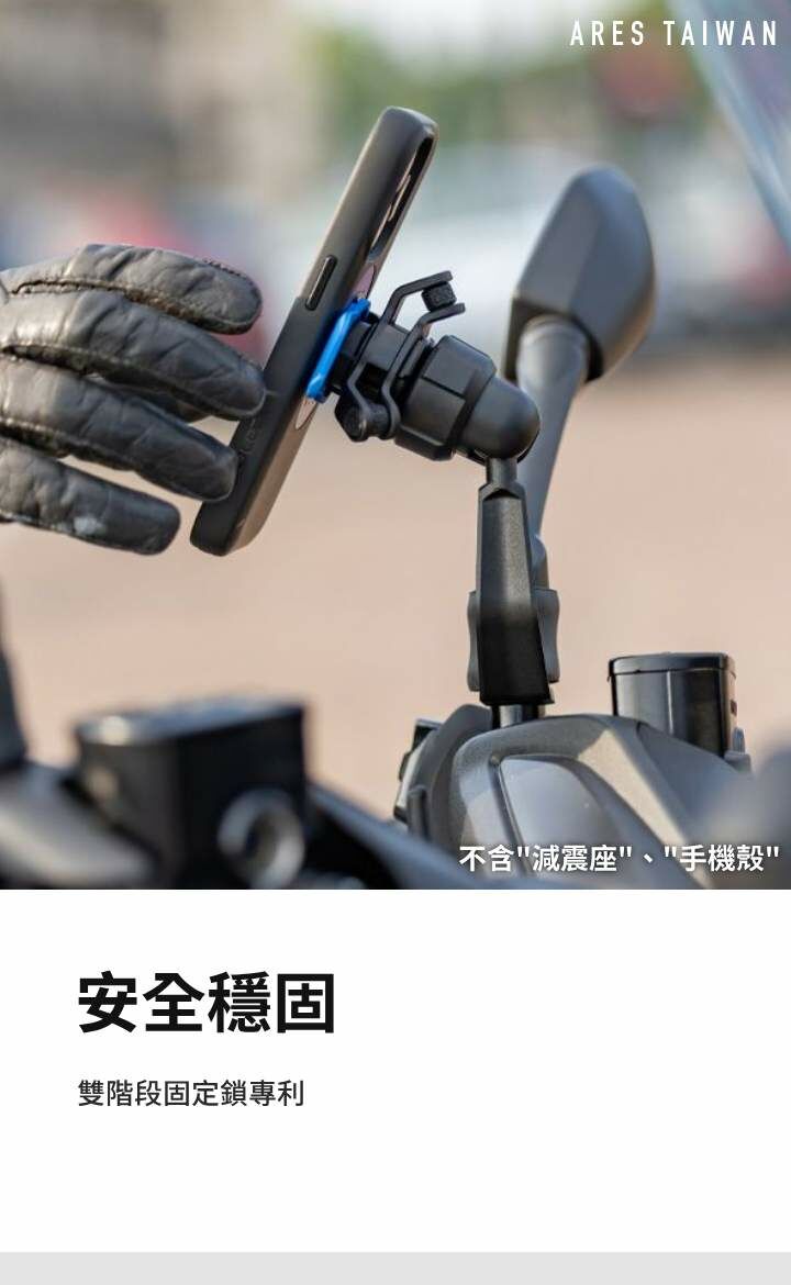 • 直接安裝在機車後視鏡底座,查看手機的最佳位置