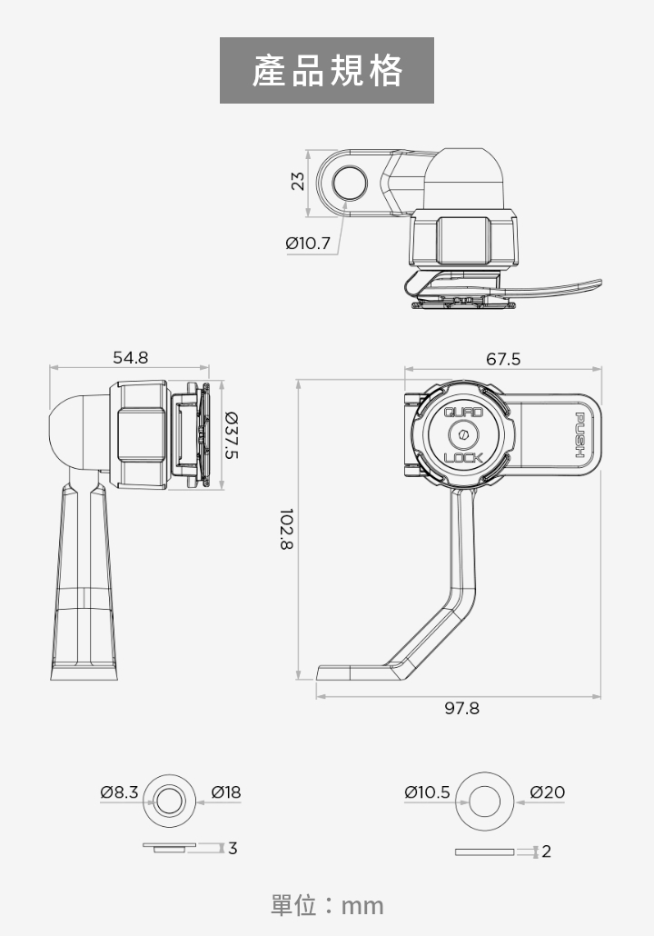 • 「不包含」磁吸/經典款手機殼、手機黏貼片、減震座、防雨無線充電