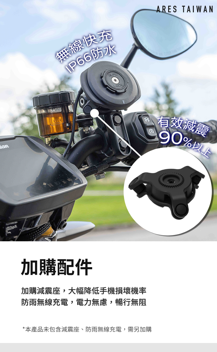 • 本產品非手持式,「不包含」磁吸/經典款手機殼、手機黏貼片、減震座、防雨無線充電