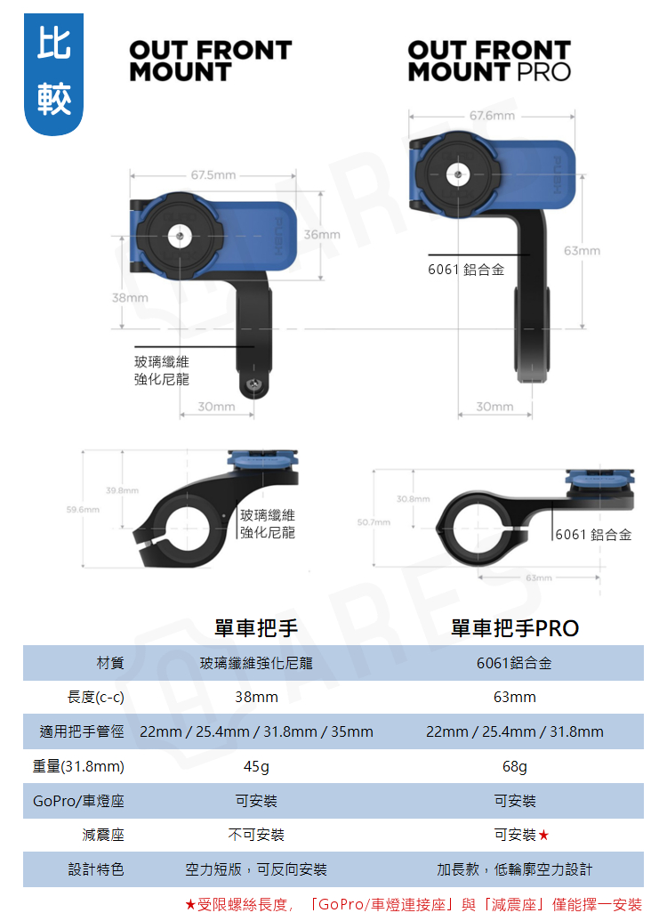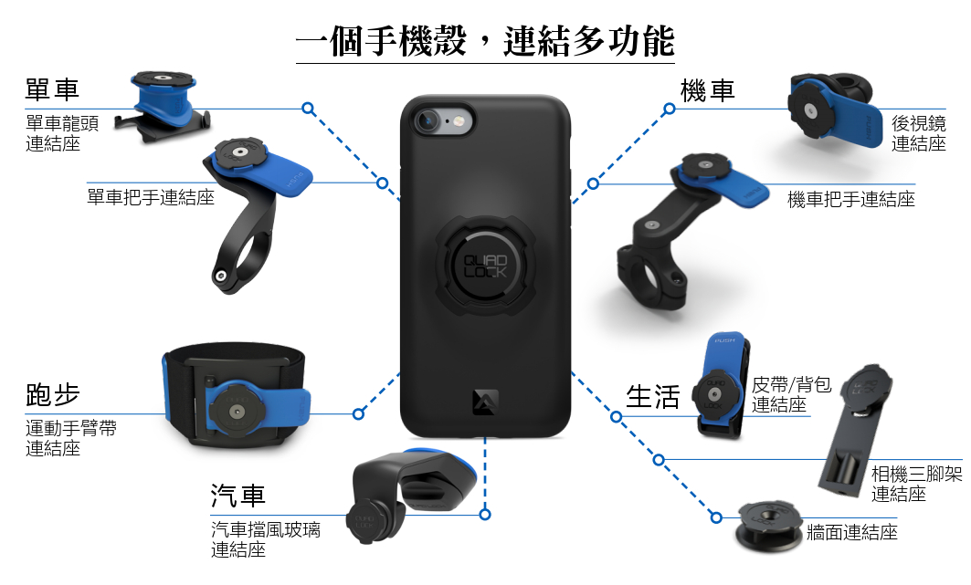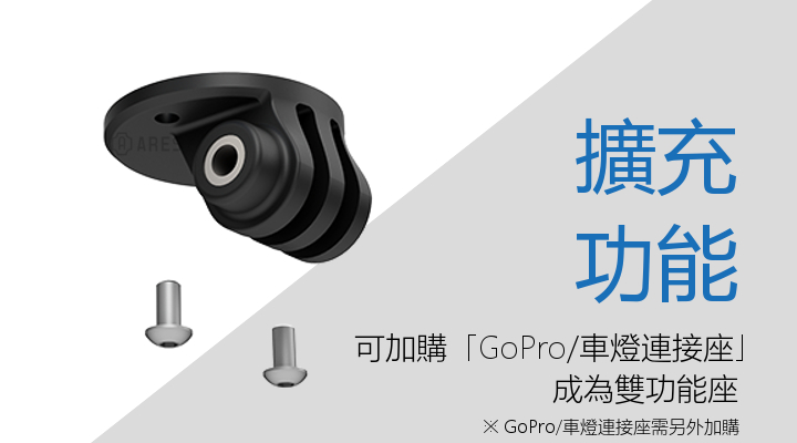 • 可加購 QUAD LOCK 「 GoPro/車燈連接座 」成為雙功能座