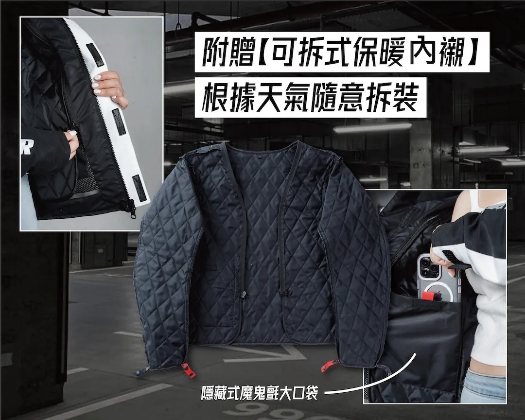 ⌖附贈【可拆式保暖內襯】,根據天氣隨意拆裝。