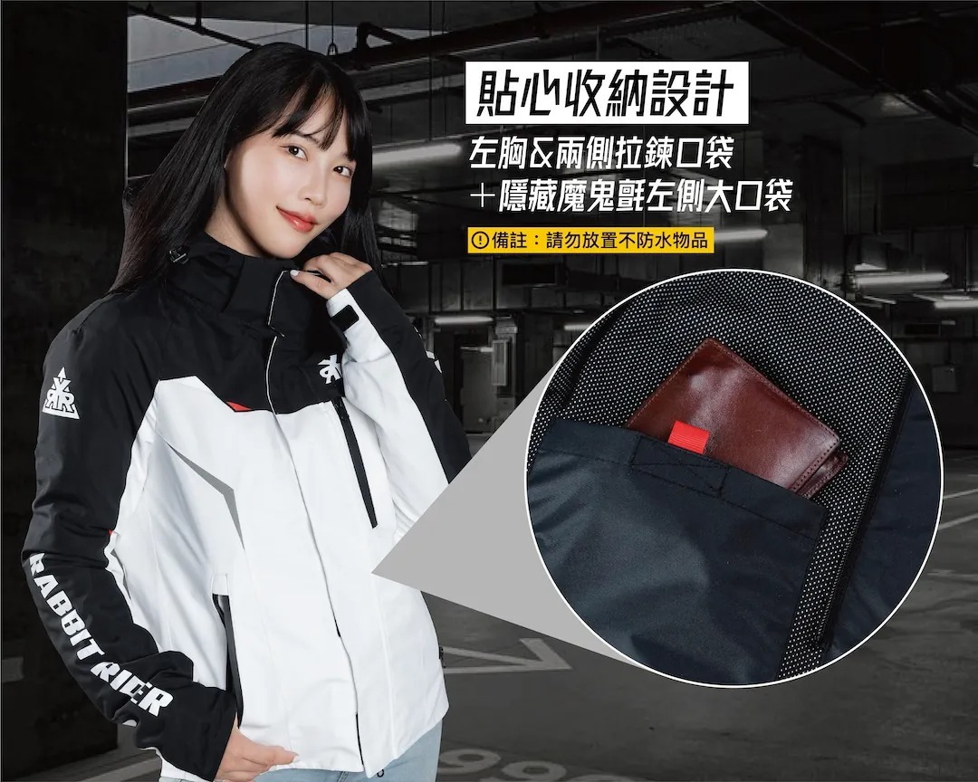 ⌖【防風外套】左胸&兩側拉鍊口袋+隱藏魔鬼氈左側大口袋。
