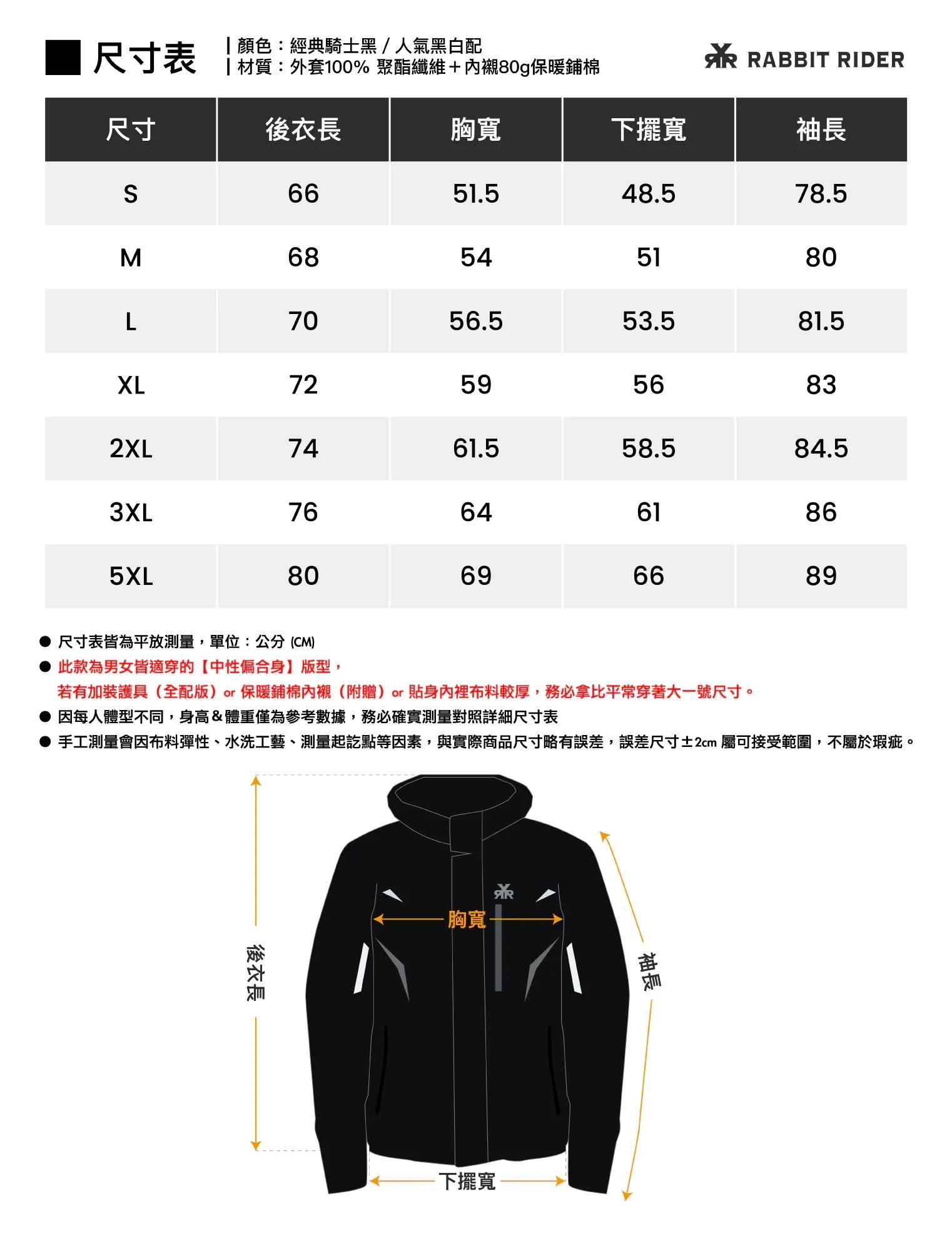 ● 此款為男女皆適穿的【中性偏合身】版型,若有加裝護具(全配版)or 保暖鋪棉內襯(附贈)or 貼身內裡布料較厚,務必拿比平常穿著大一號尺寸。