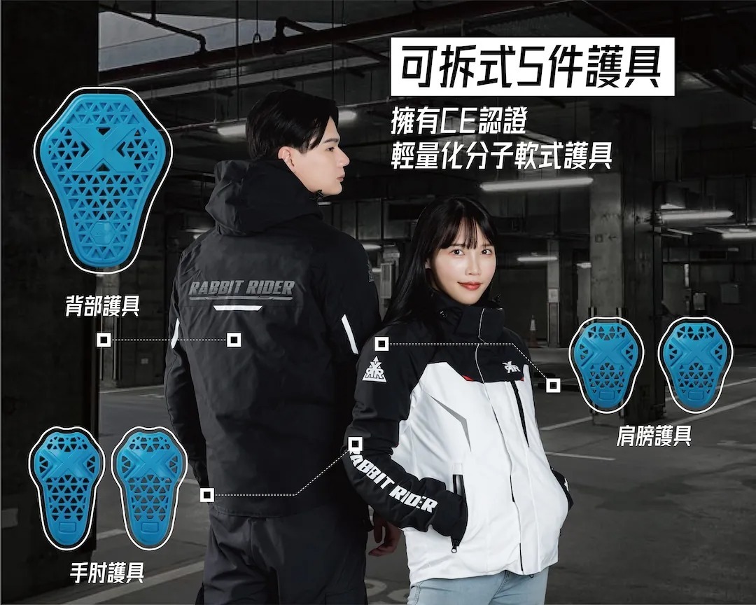 👉【可拆式𝟱件護具】,擁有CE認證的輕量化分子軟式護具。