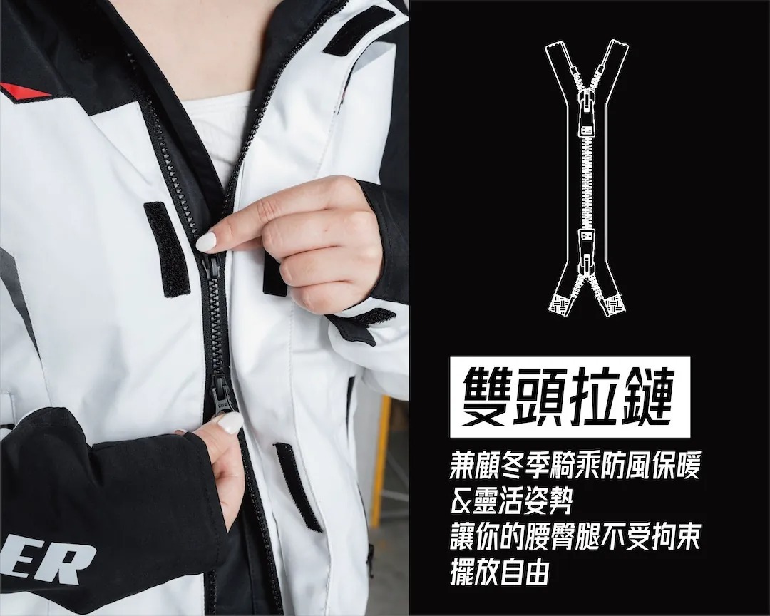 👉適合冬天騎乘的雙頭拉鏈:兼顧騎乘防風保暖&靈活姿勢,讓你的腰臀腿不受拘束、擺放自由。