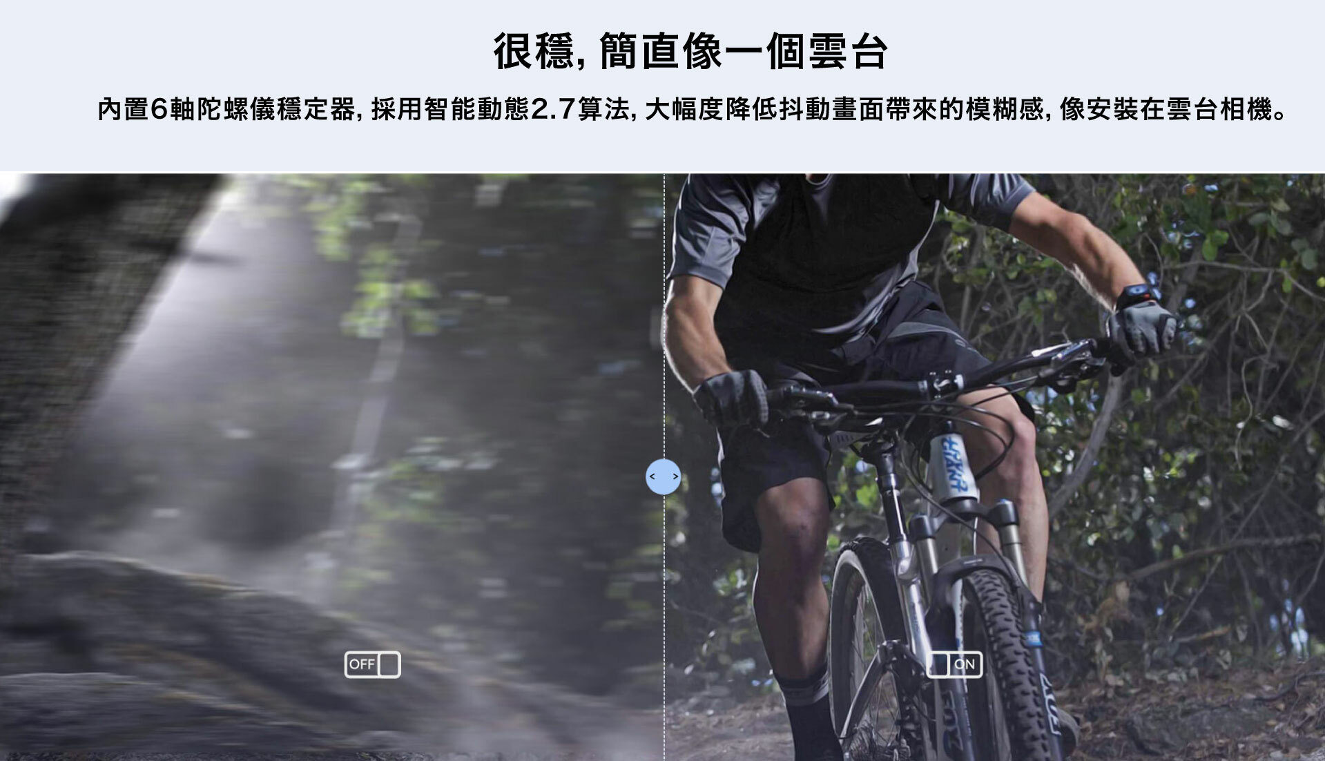 • 內置6軸穩定器,採用智能演算法,大幅降低畫面抖動的模糊感