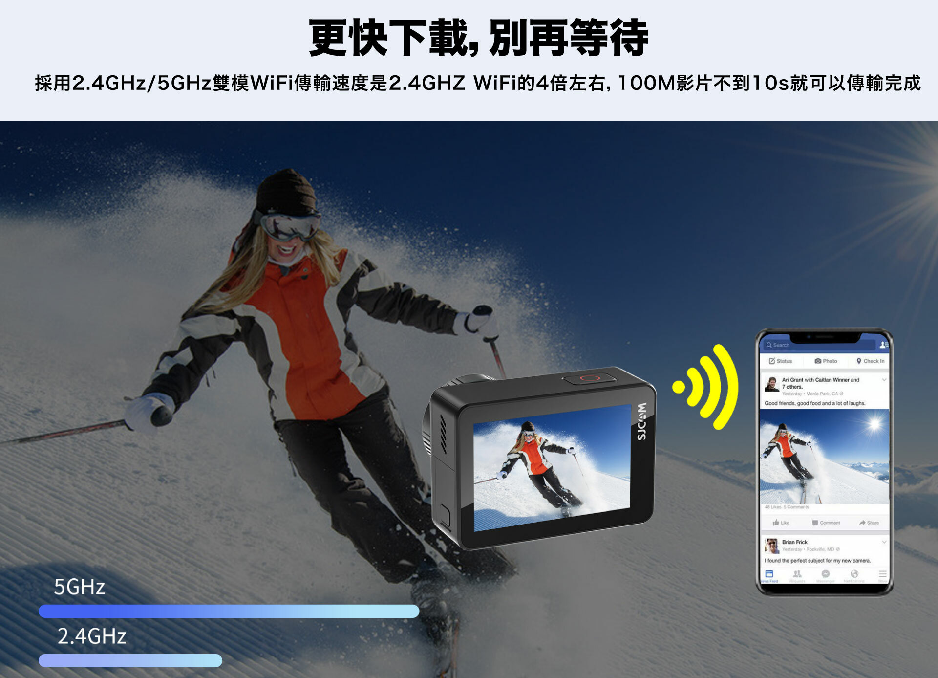 • 5G WiFi傳輸為2.4G的4倍,100M的影片10秒即可傳輸完畢