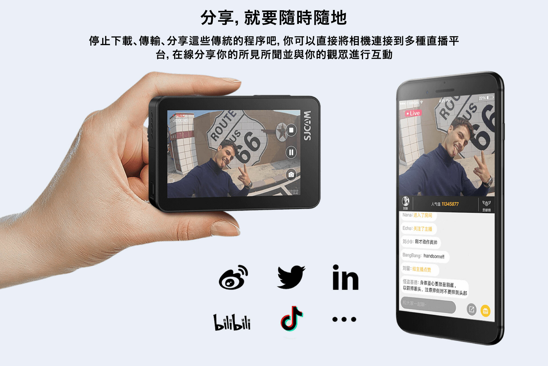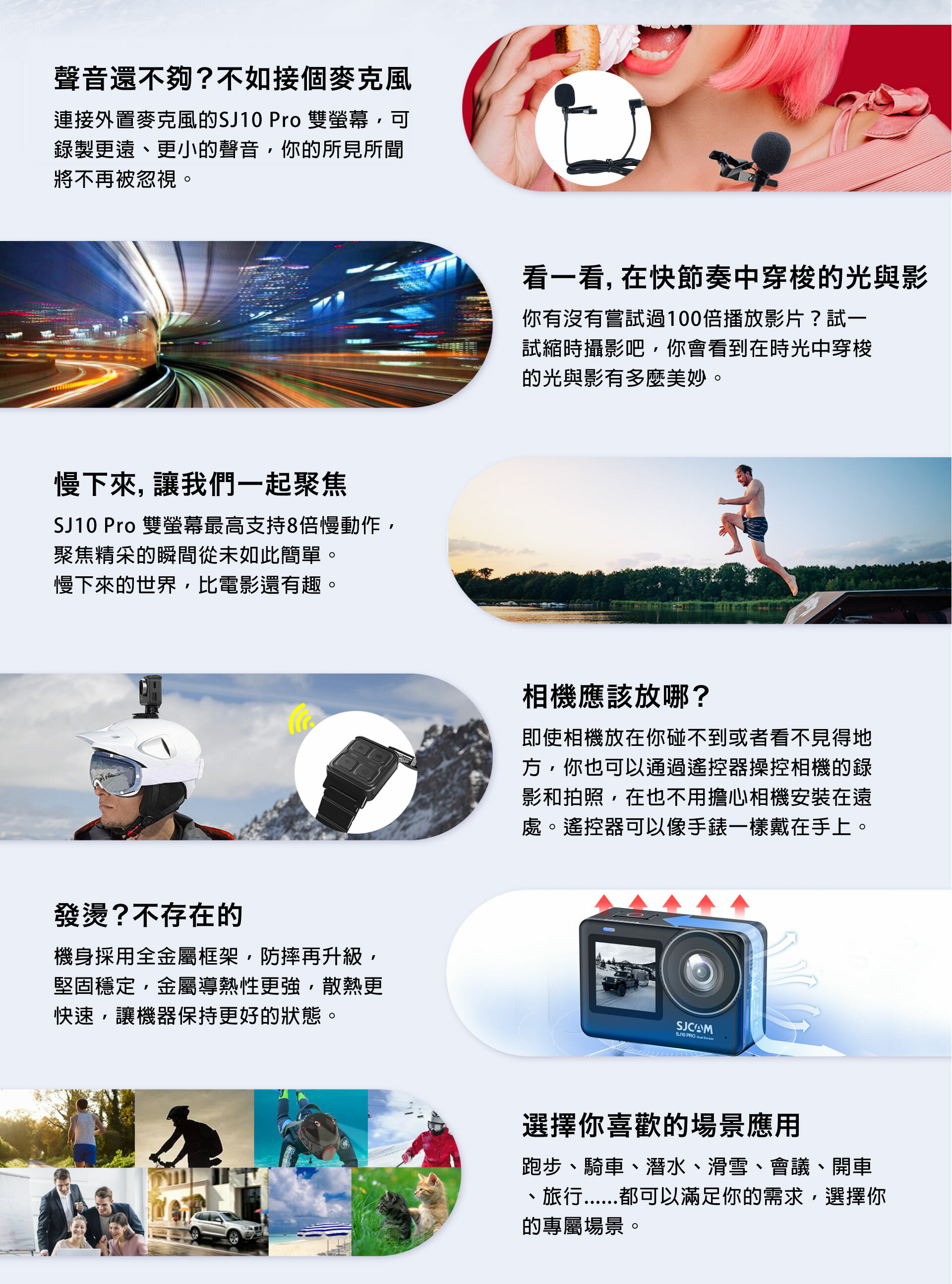 • 內建1300mAh鋰電池,搭配SJCAM二代低功耗技術,續航時間提升30%