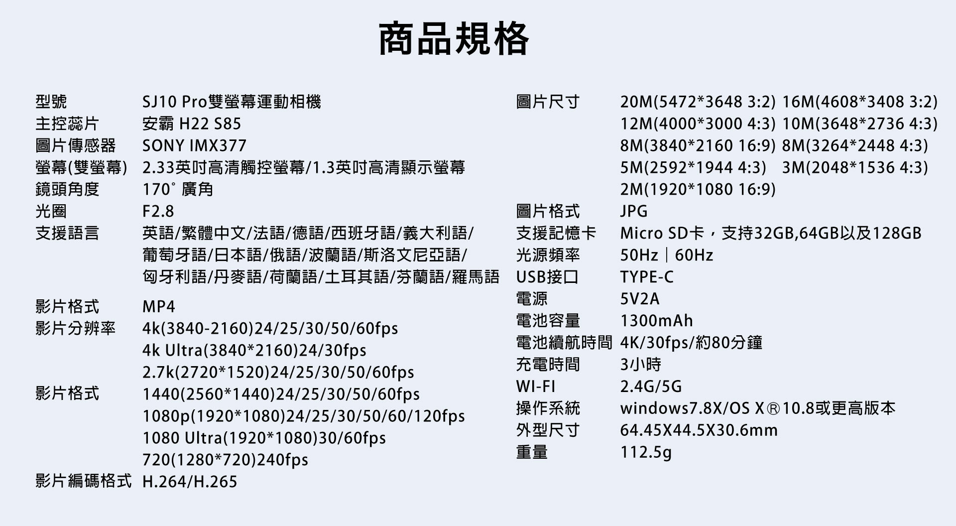 【出清特賣】SJCAM SJ10 Pro Dual Screen雙螢幕運動相機