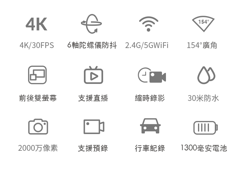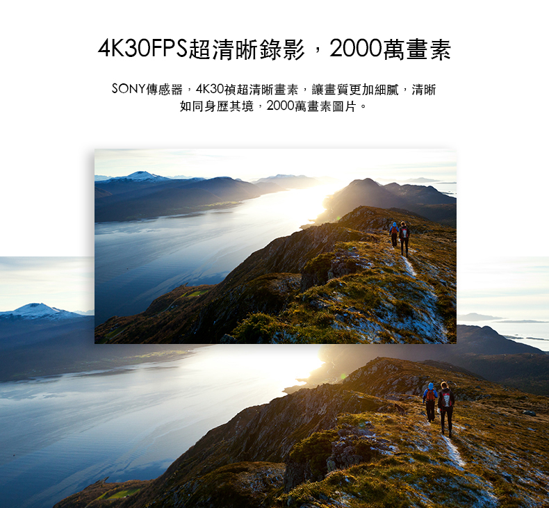 • 4K 30 FPS高清錄製,2000萬像素圖片,畫面細膩清晰