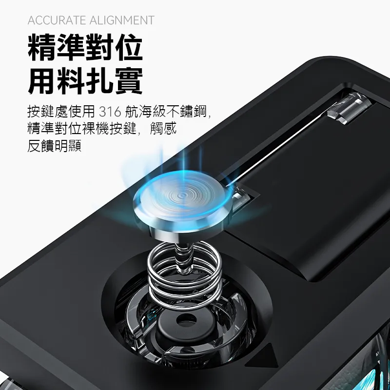 • 精準對位設計,使用 316 航海級不銹鋼材料,按鍵觸感扎實,反饋明顯
