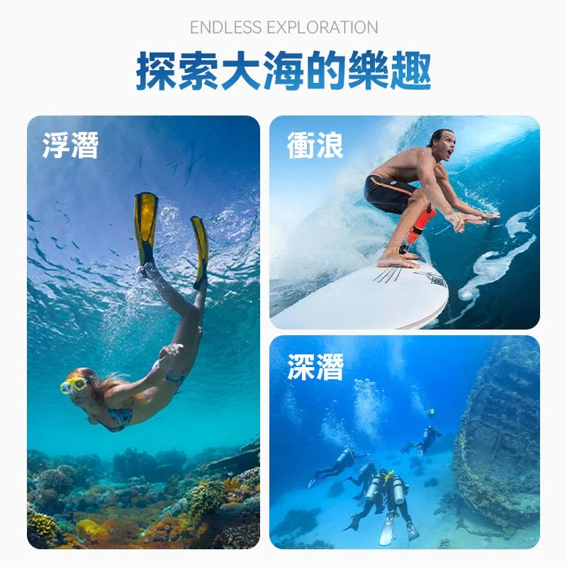 • 具備 45 米防水功能與堅固的外殼,能夠在深海中自由暢遊