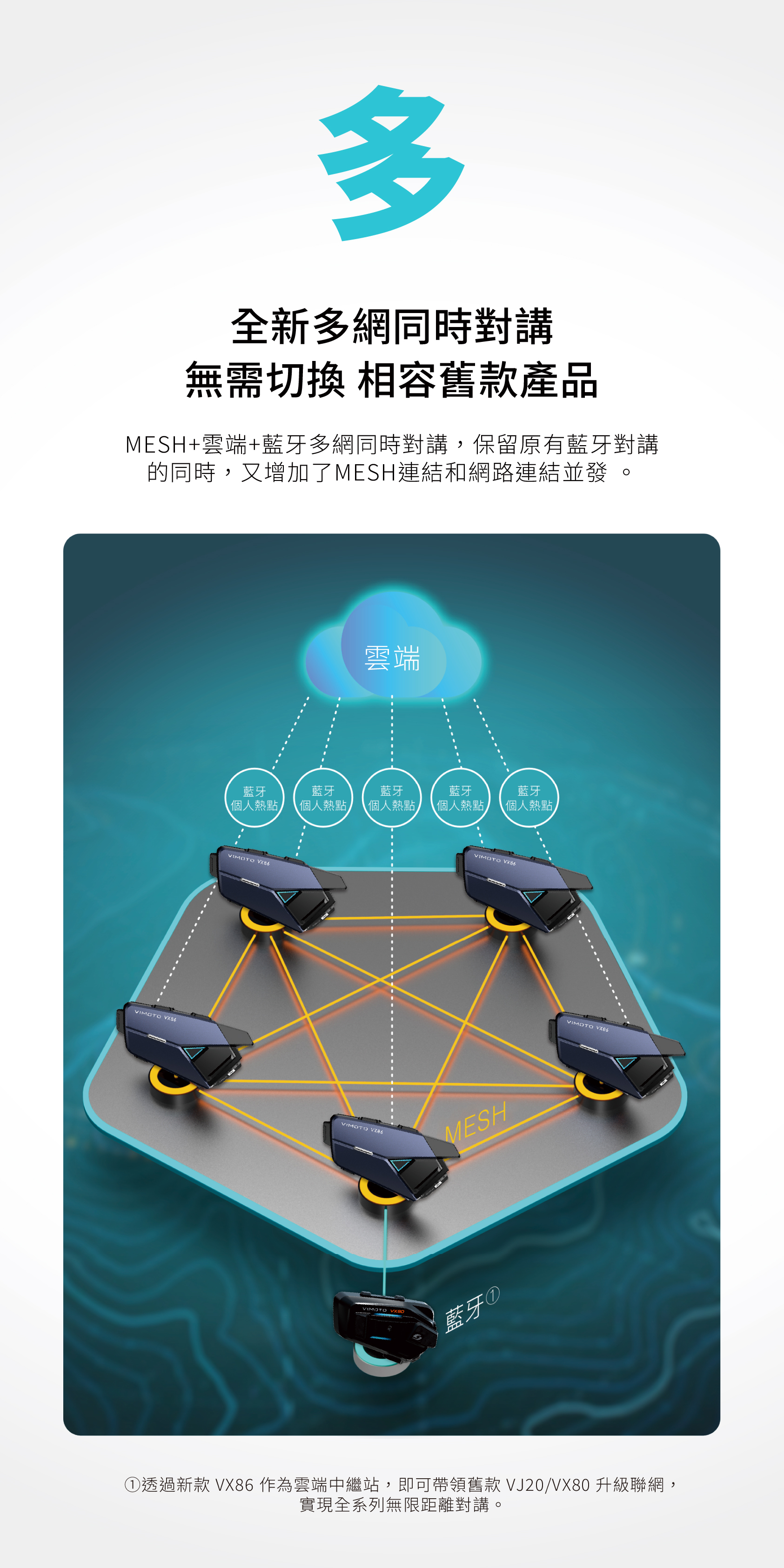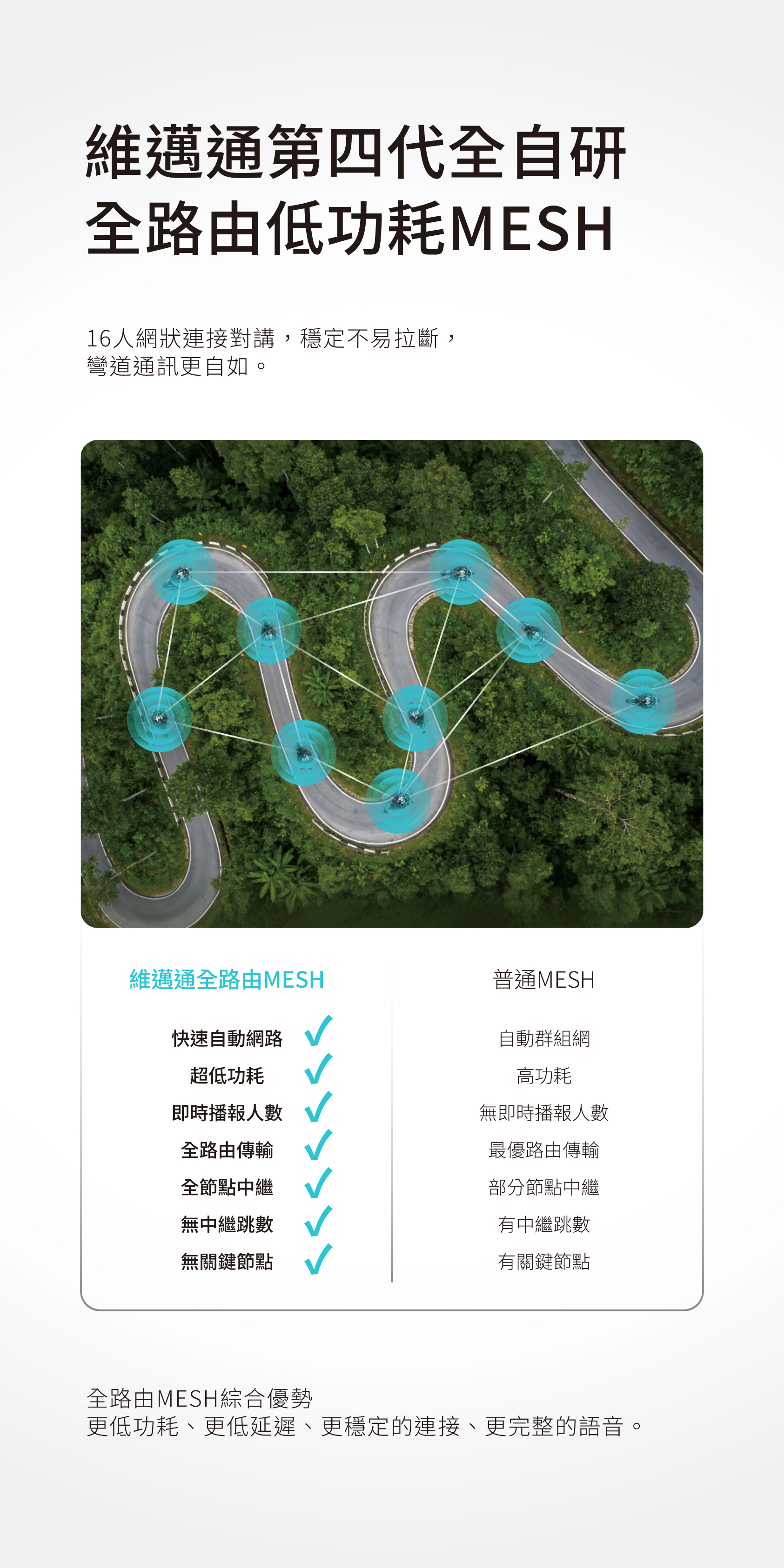 • 低功耗全路由 MESH 16人對講