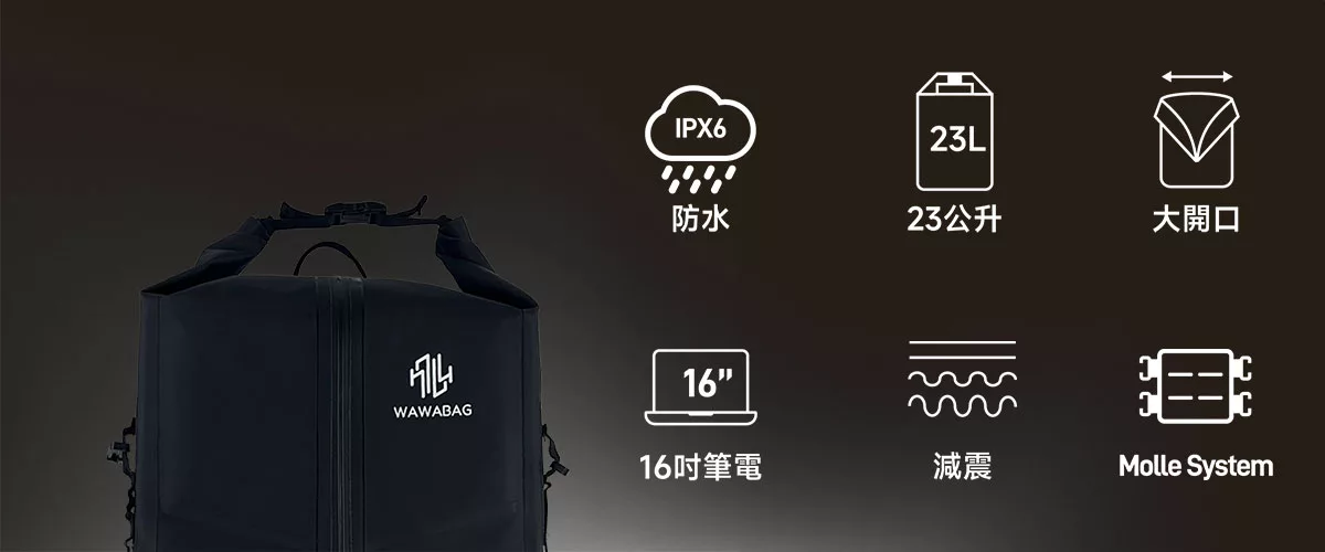 WAWABAG 2.0 蛙蛙包2.0,專為城市通勤和短途旅行的你設計,具備IPX6防水功能,抵禦各種惡劣天氣,配有前置拉鏈,一秒展開背包,大開口設計讓你快速拿取底層物品,23L容量可輕鬆放置16吋筆電、化妝品、運動裝備或換洗衣物,適合男女通勤及短途旅行,完美平衡收納與便攜性,配有可拆式3C收納袋,EVA減震墊保護電子設備,讓你在顛簸的路途也無需擔心!無論是穿梭在繁忙的都市街道,還是探索蜿蜒的山間小徑,WAWABAG 2.0都能讓你自由切換!