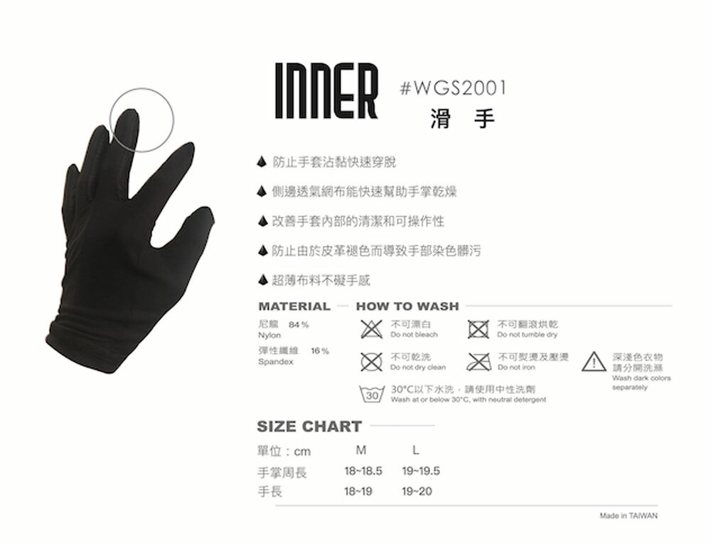 • 涼感服貼,側邊透氣網布能快速幫助手掌乾燥