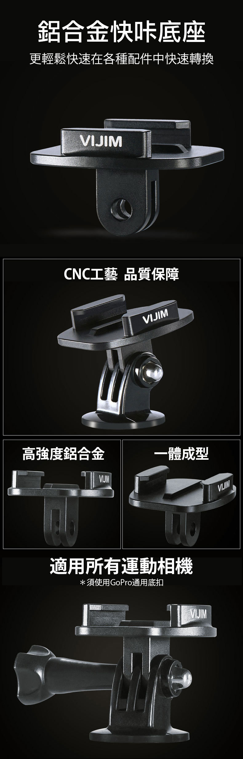 • 兼容性強,運動攝影機裝上GoPro通用底扣均可使用。