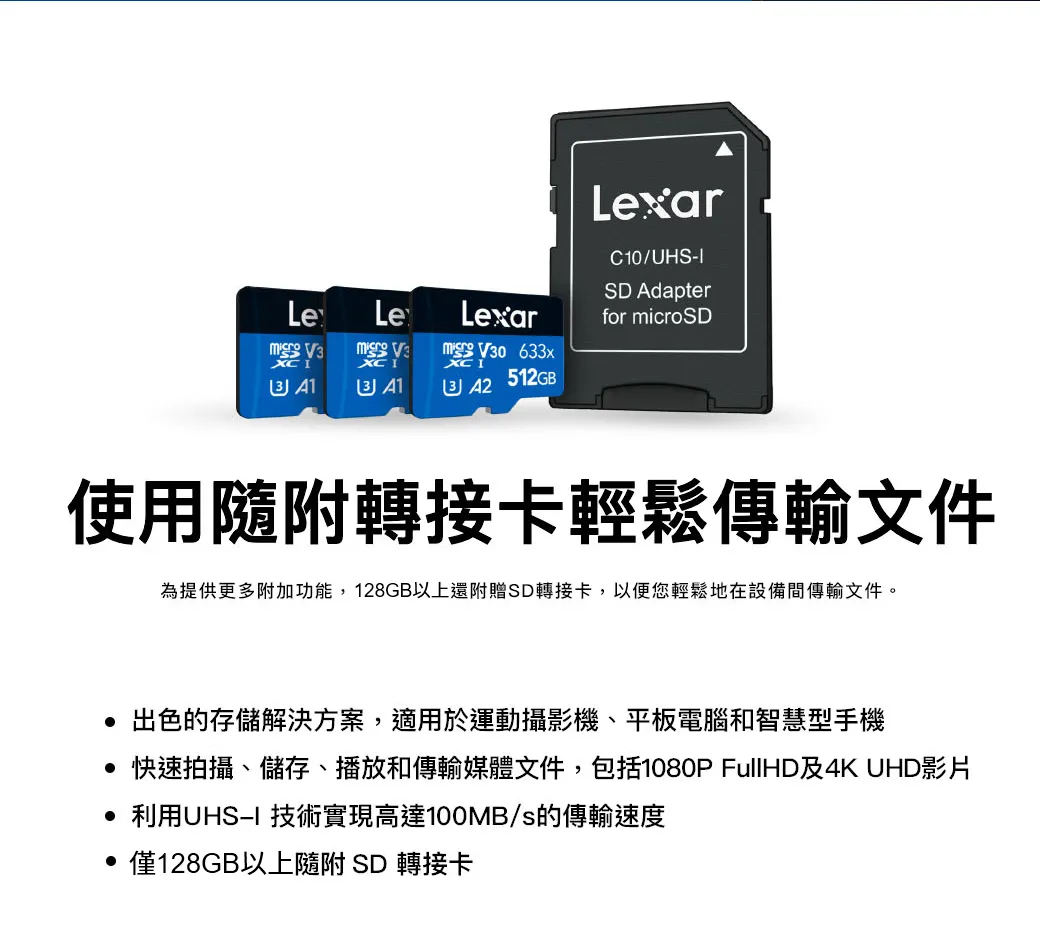 Lexar 雷克沙 633x microSDXC UHS-I A1 U3 128G 記憶卡