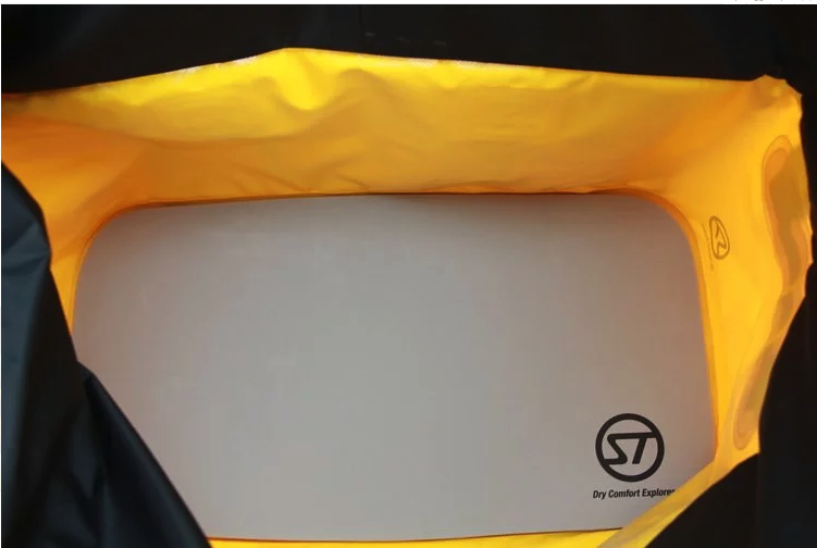 有別於一般防水背包的設計,Dorado 55L擋布採用輕薄材質,減輕重量。捲摺後可支撐包體,維持方正外型。