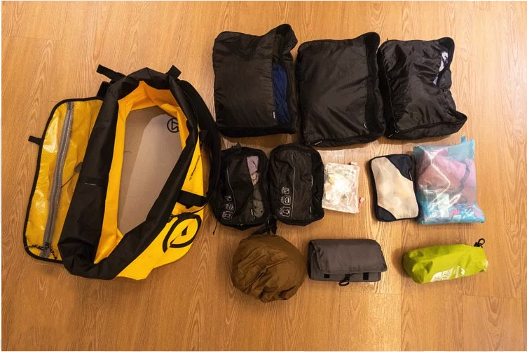 不同於一般大型防水袋小開口的長筒包體,Dorado 55L長方體的上蓋有如開冰箱門,方便取物。五天四夜的衣物和盥洗用品通通放得進去。
