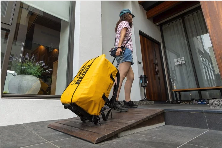 Dorado 55L完整的後背帶跟提把,可以背負或手提。還可固定在行李車上,輕鬆拖行。